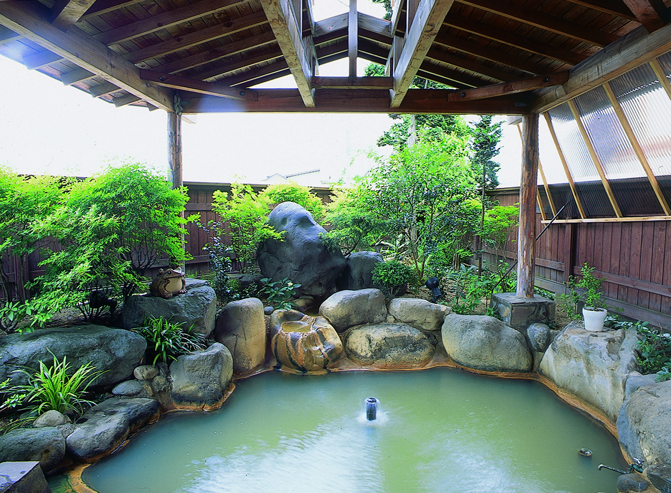 また、会社の技術を活かして敷地内に温泉を掘削し、ひのき風呂と露天風呂の建屋を設置しました。社員の皆さんとその家族が利用できる癒しスポットです。